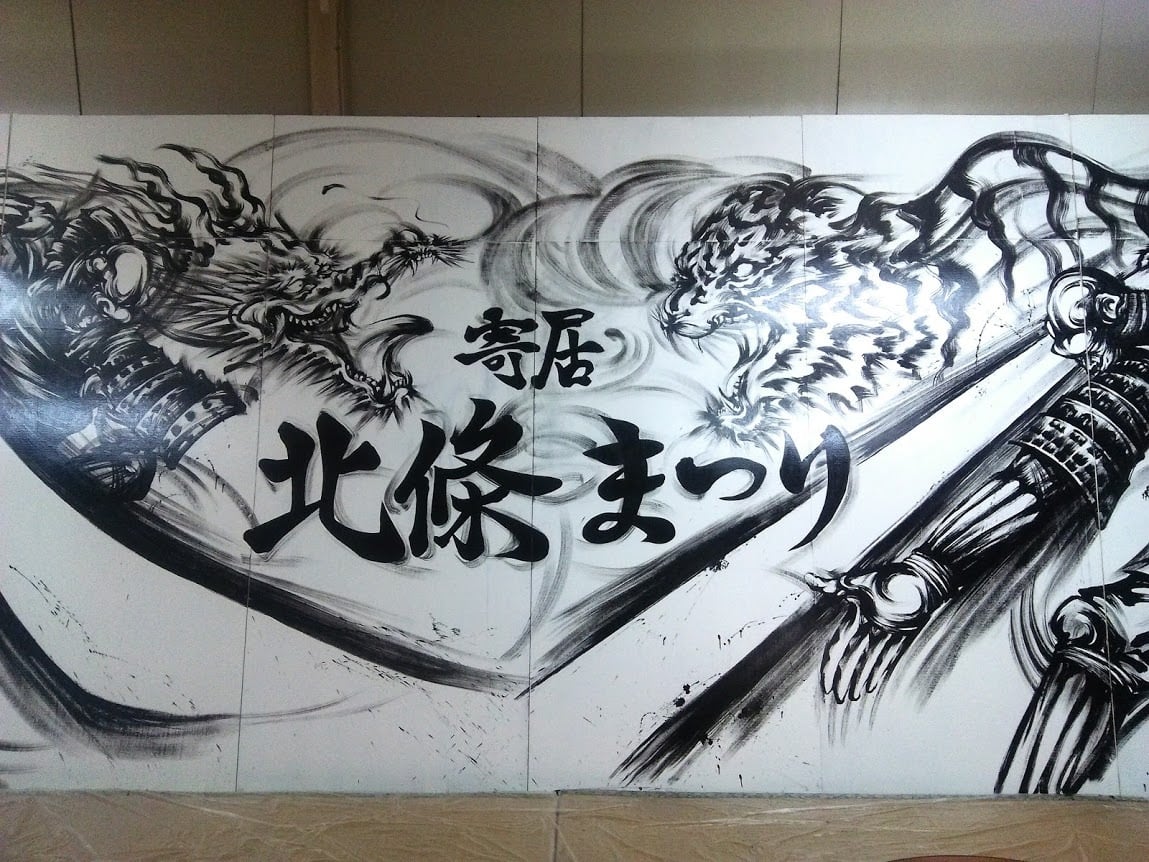 寄居の北條まつりで使用された看板。寄居市に行って描きました、制作に3日ほどです。